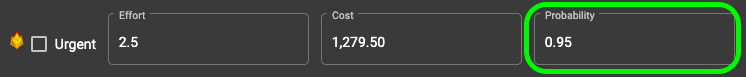 The smart probabilities feature is activated by entering a probability value into at least one workitem.